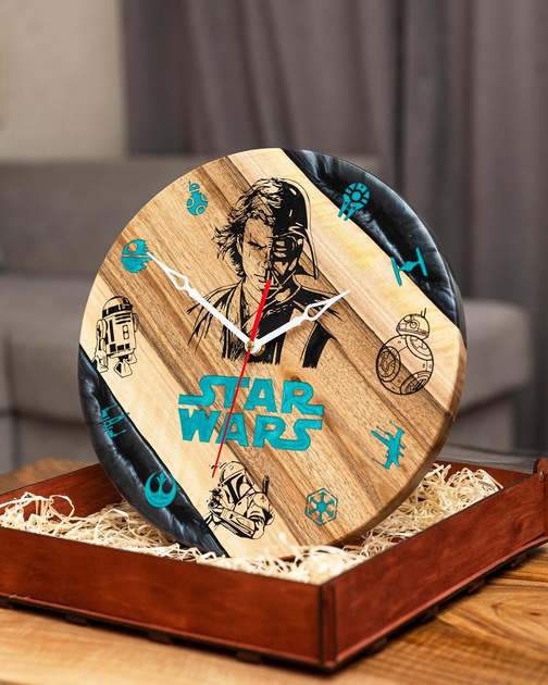 Настінний годинник з дерева та епоксидної смоли Star Wars, ручна робота, 34 см