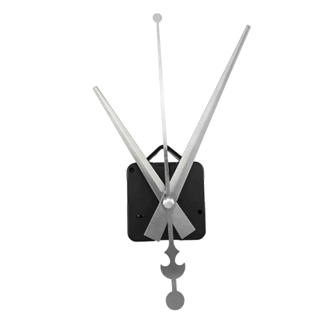 Годинний механізм. Стрілки 16,2-12-19,5 колір срібло із хвостиком. Шток 13/5мм без вушка (3925-5)