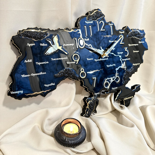 Годинник настінний з епоксидної смоли "Мапа України" 70х47 см (024-70)