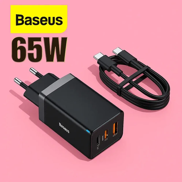 Зарядний пристрій Baseus GaN5 Pro Fast Charger 65W QC4.0+PD3.0 USB+2Type-C + кабель 100w Швидкий Мережевий зарядний пристрій