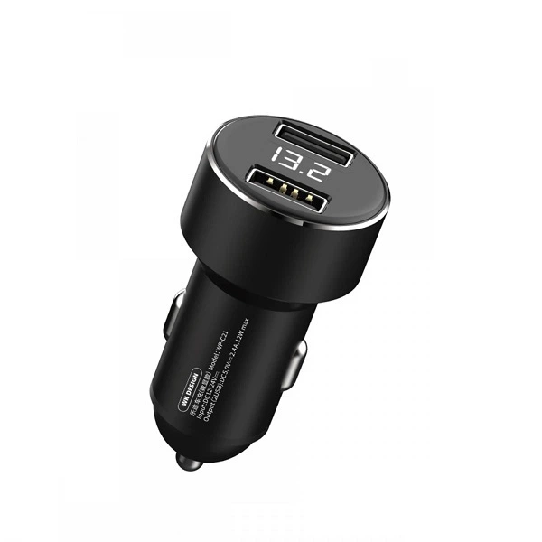 Автомобільний зарядний пристрій WK WP-C21 Display 2.4А 2USB 18W чорний