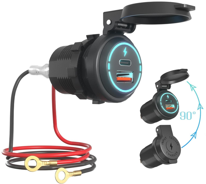 IP66 Автомобільна врізна зарядка 12-24V USB QC 3.0 + PD Type-C з кришкою на пружині