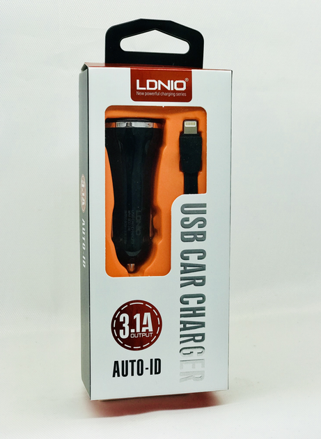 Автомобільний зарядний пристрій LDNIO 3.1A 2 USB порти знімний кабель