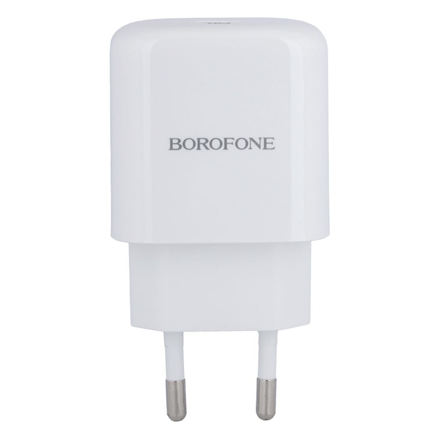 Мережевий зарядний пристрій borofone 20W з підтримкою pd qc qc30 з кабелем type c на lightning білий