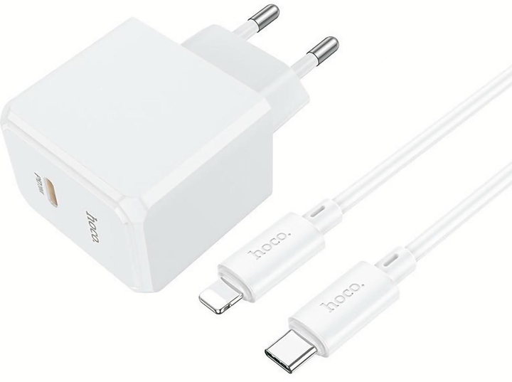 Зарядний пристрій hoco 20W з підтримкою pd і qc з кабелем type c на lightning білий