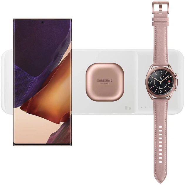 Бездротовий зарядний пристрій Samsung Wireless Charger Trio (Phone + Galaxy Watch + Galaxy Buds) White (EP-P6300TWEGRU)