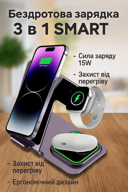 Безпровідна зарядна станція 3-в-1 для смартфона і гаджетів