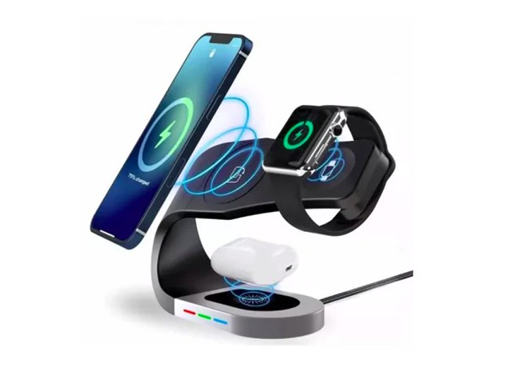 Зарядний пристрій для годинника навушників Veron Y36 3в1 MagSafe бездротова зарядка чорний