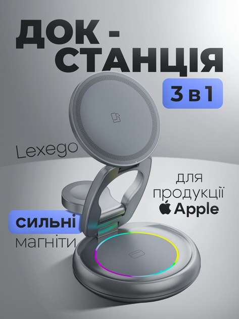 Бездротова зарядна док-станція MagSafe 3 в 1 для телефону, навушників, годинyника 20W