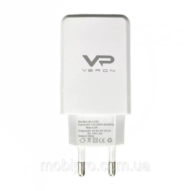 Зарядний пристрій Veron VR-C13Q 18W Quick Charge 3.0 1 USB білий