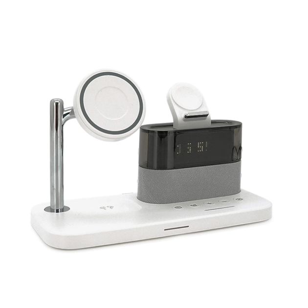 Бездротова зарядка+часи C-09 5в1, під телефон+часи+навушники, магніти, Black, Box