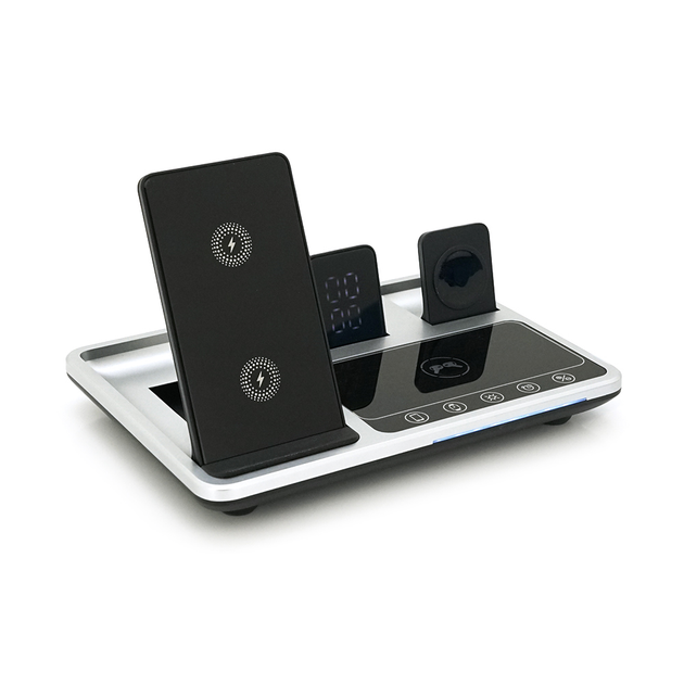 Бездротова зарядка+ годинник C-09 5в1, під телефон+годинник+навушники, магніти, Black