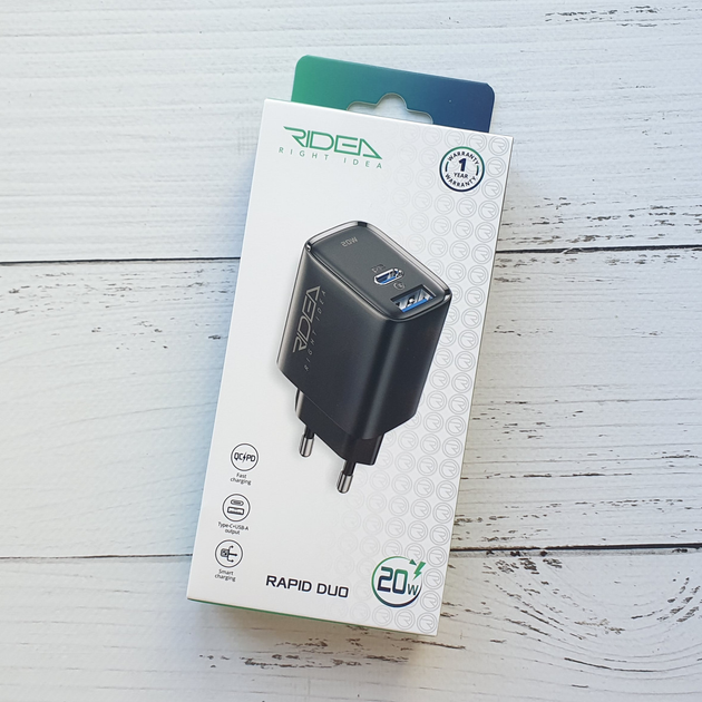 Адаптер живлення Ridea RW-20220 Rapid Duo 20W для смартфонів і техніки з швидкою зарядкою Quick Charge 3.0/PDЧерный
