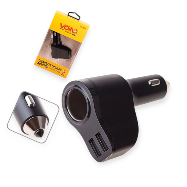 Розгалужувач прикурювача VOIN SC-2070 з USB, 2 виходи, 1 USB