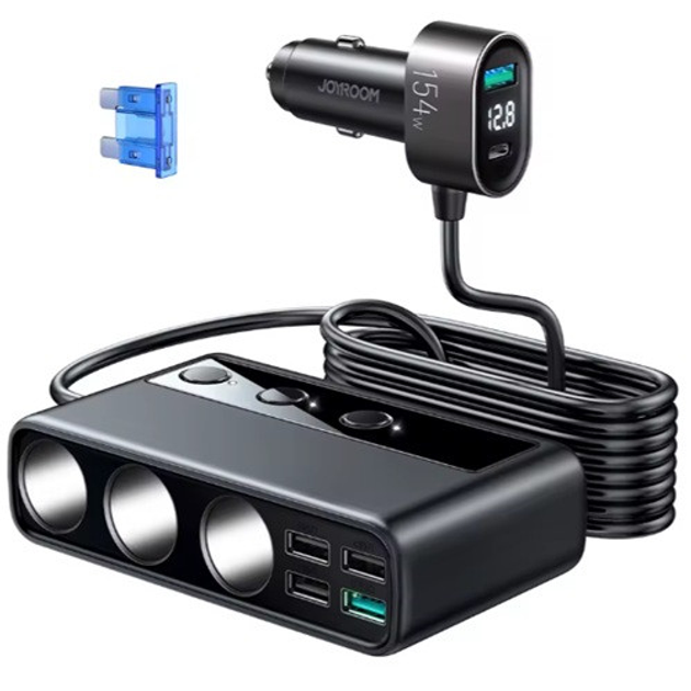 Автомобільний розгалужувач прикурювача JOYROOM JR-CL06 12-24В 9в1 154Вт, PD QC3.0 чорний колір, універсальний IN-637097