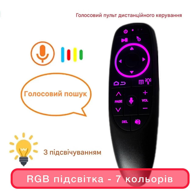Аеропульт мишка новинка Air mouse G10S з RGB підсвіткою - 7 кольорів, гіроскопом та мікрофоном - зручний пульт для смарт при