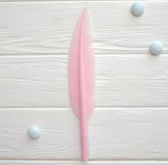 Ручка гелева чорна, 0,5 мм Пір'я рожеве