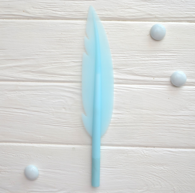 Ручка гелева чорна, 0,5 мм Пір'я голубий