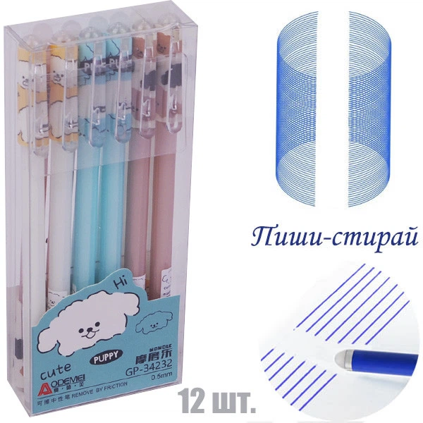 Ручки гелеві "Пиши-стирай" 34232-12 штук-SH427