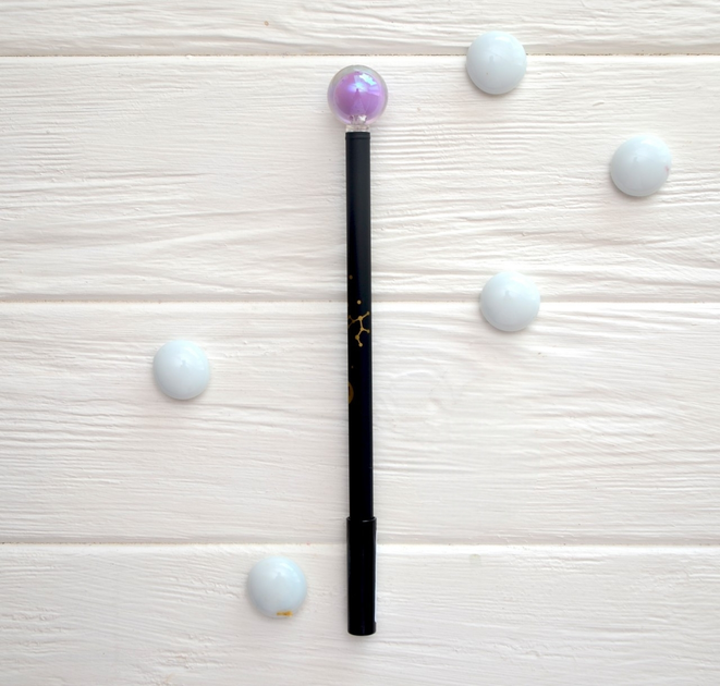 Ручка гелева чорна, 0,5 мм Пір'я сиреневе