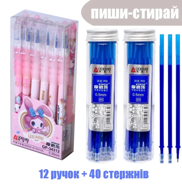 Набір: Ручки пиши-стирай сині, Aodemei GP-34317 (набір 12 штук) + стрижні 40 (шт)--sh49740
