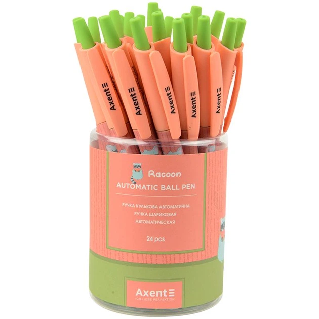 Набір кулькових ручок 24 шт Axent Racoon автоматична синя 0.5 мм (AB1090-29-A)