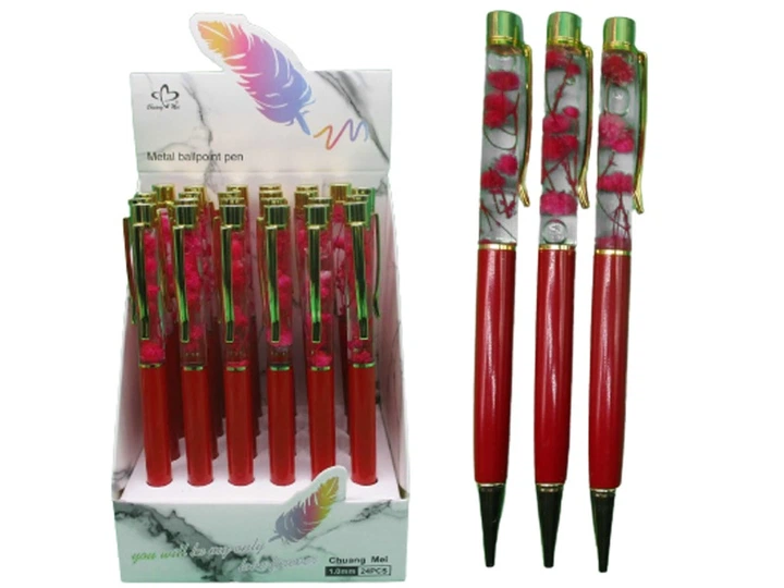 Ручка кулькова автоматична Червона із квіткою, металева, 0.7 мм