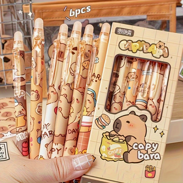 Канцелярський набір ручок пиши стирай 6 шт в дизайні Капібара