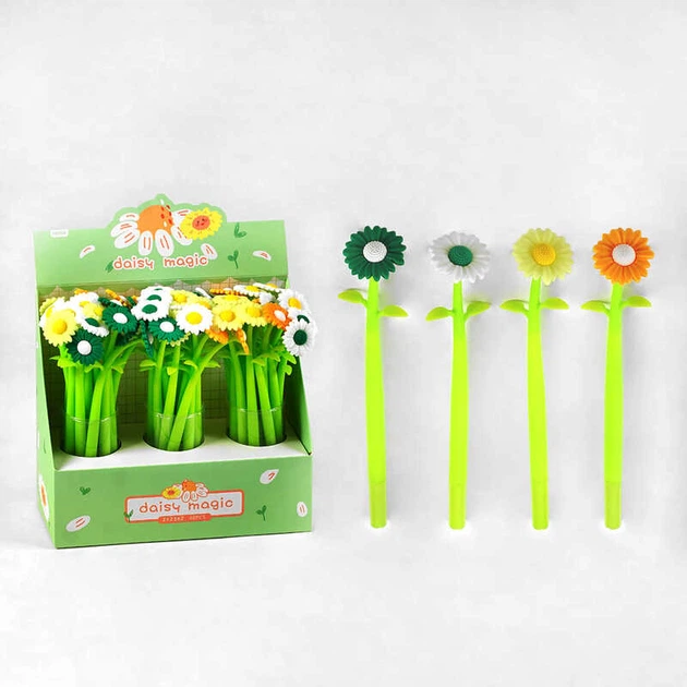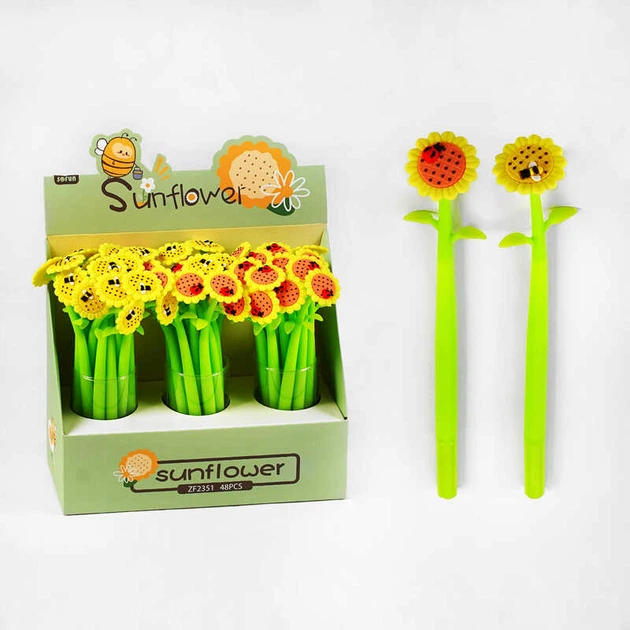 Ручка C 60783 ЦІНА ЗА 48 ШТУК У БЛОЦІ, "Соняшник", гелева, синя паста