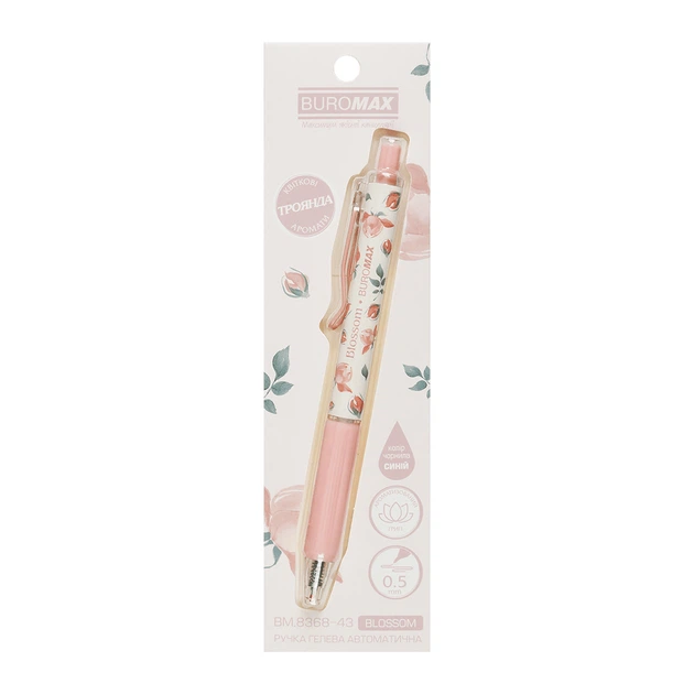 Ручка гелева Buromax автоматична BLOSSOM, 0.5 мм, ароматний грип, Троянда, сині чорнила, в блістері (BM.8368-43)