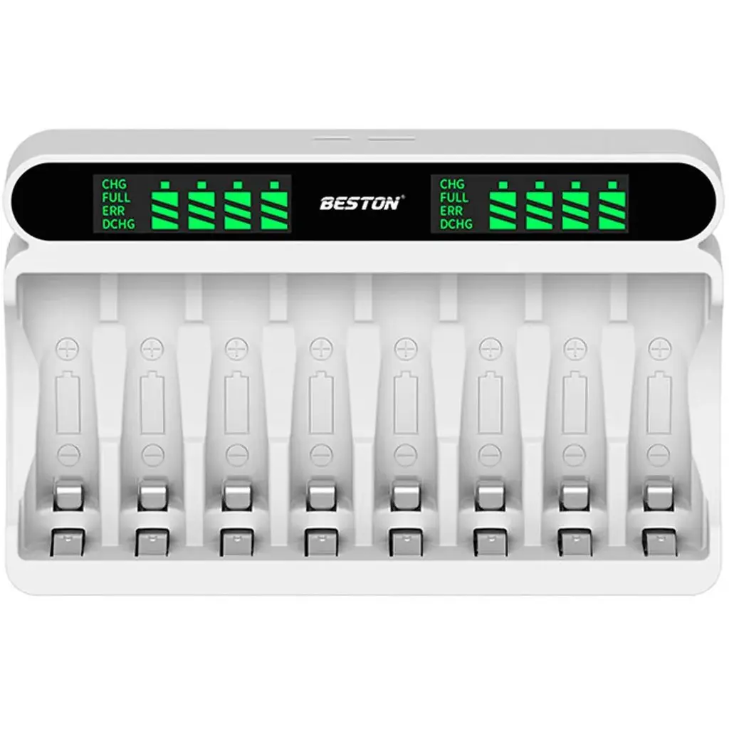 Зарядний пристрій універсальний BESTON, 8 каналів LED інд., підтримує Li-ion, Ni-MH та Ni-Cd AA (R6), ААA (R03)