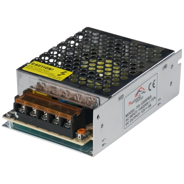 Блок живлення імпульсний Mustang Energy PS-1205PB, 12 В, 5 А, Потужність 60 Вт, Сріблястий