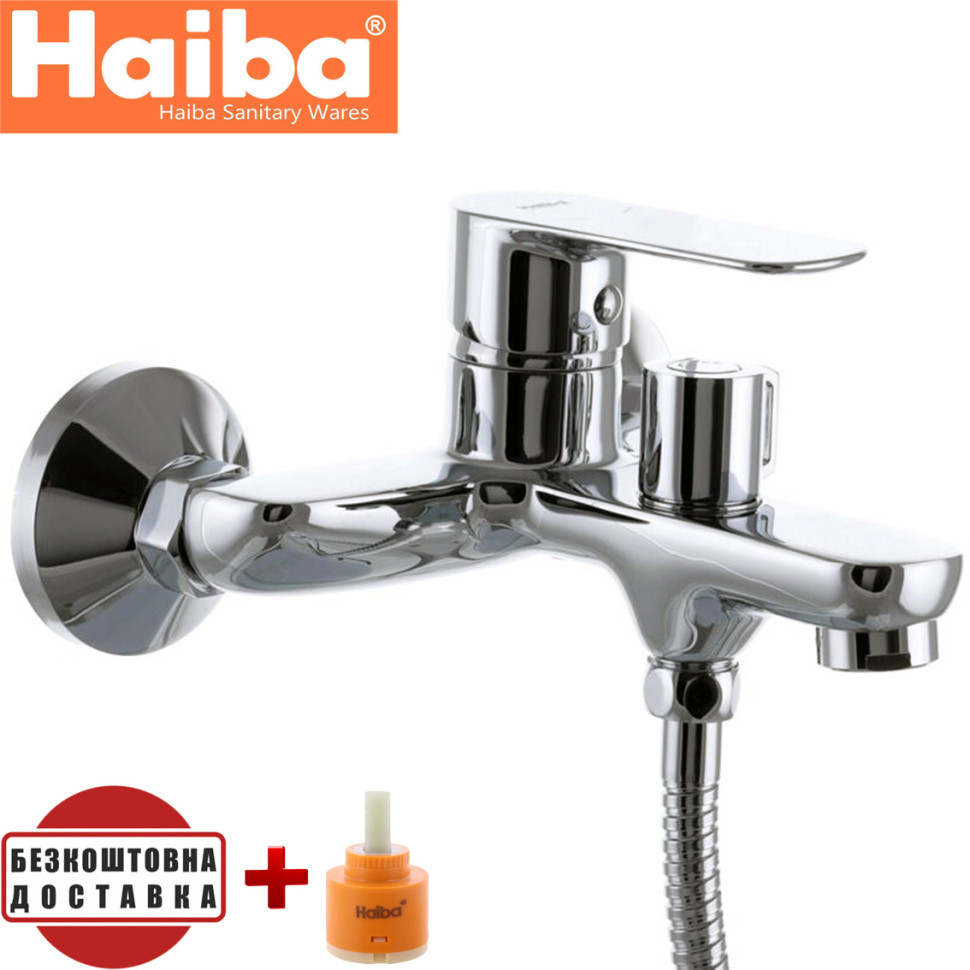 Змішувачі торгової марки HAIBA виготовляються на німецькому обладнанні з латуні найвищої якості. Контроль якості продукції HAIBA здійснюється фахівцями з Німеччини. У виробництві використовуються іспанські картриджі SEDAL та німецькі кран-букси. Латунний картриджний змішувач для душової кабіни: литий із душовим шлангом та лійкою в комплекті. Змішувач призначений для настінного