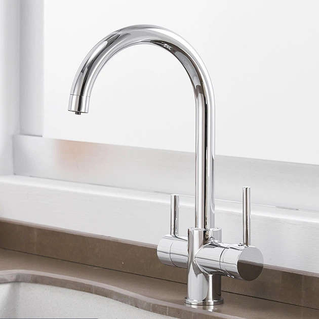 Змішувач для раковини на кухню двоважільний з краном для фільтрованої води WanFan вертикальний монтаж Нікель