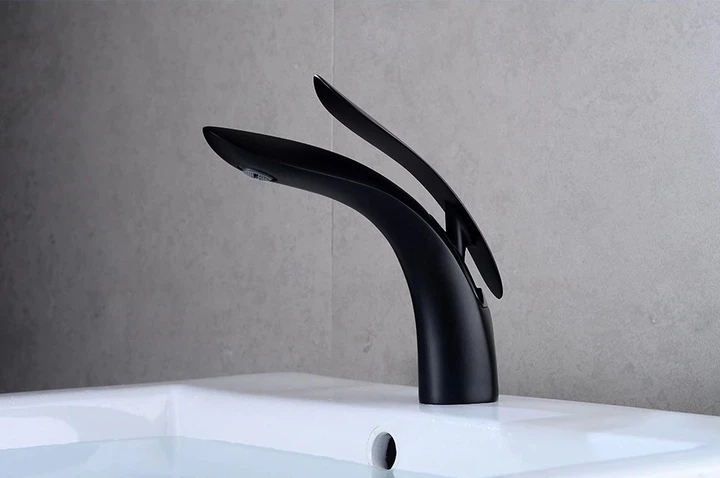 Змішувач для раковини одноважільний вигнутий кран горизонтальний монтаж WanFan Чорний 4595037