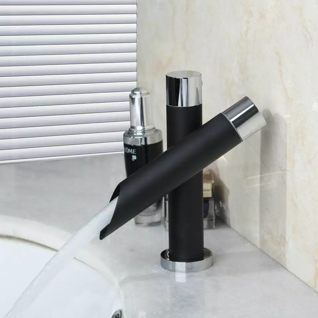 Змішувач для умивальника одинважільний горизонтальний WanFan для ванни Чорний Хром