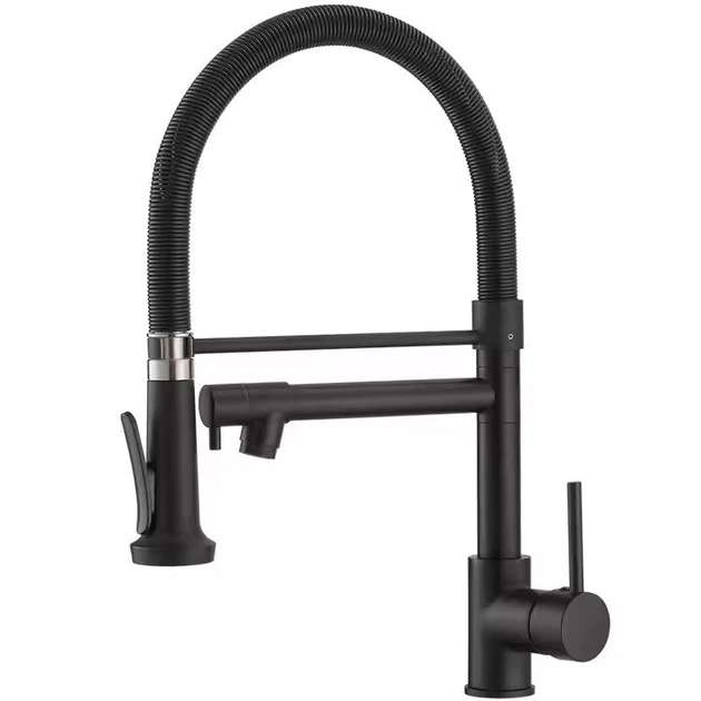 Змішувач для кухні з латуні зі стаціонарним і висувним зливом з нержавіючої сталі, колір чорний