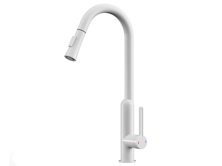 Змішувач для мийки, витяжна лійка, латунь, білий, AIM, DG16057- frosted white