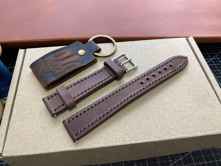 Шкіряний Ремінець 19 мм для Часів Ручної Роботи із Натуральної Шкіри Коричневий Колір Azteca