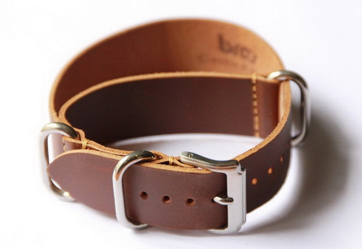 Ремінець для годинника BROS NATO з натуральної шкіри — модель brosn20w2-11, мілітарі стиль, універсальний