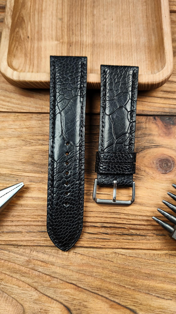 Ремінець для годинників з шкіри лап страуса 20 мм чорний