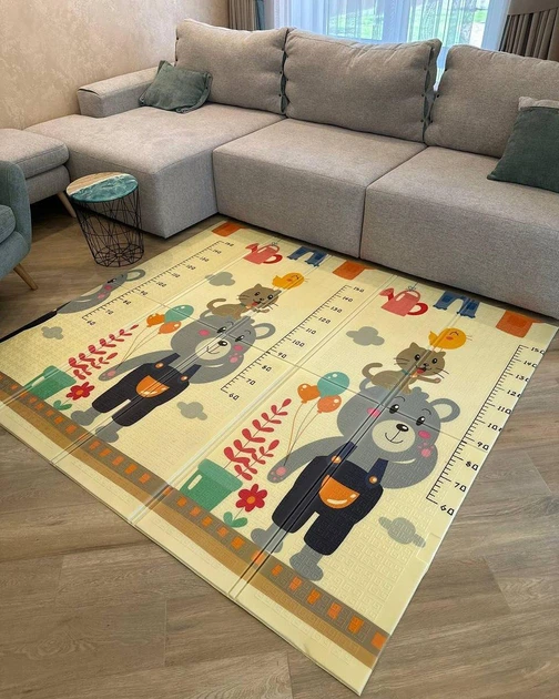 Килимок дитячий ігровий "Тваринки з ростоміром, дорога" 150180 см | Термокилимок складаний двосторонній, гіпоалергенний, роз