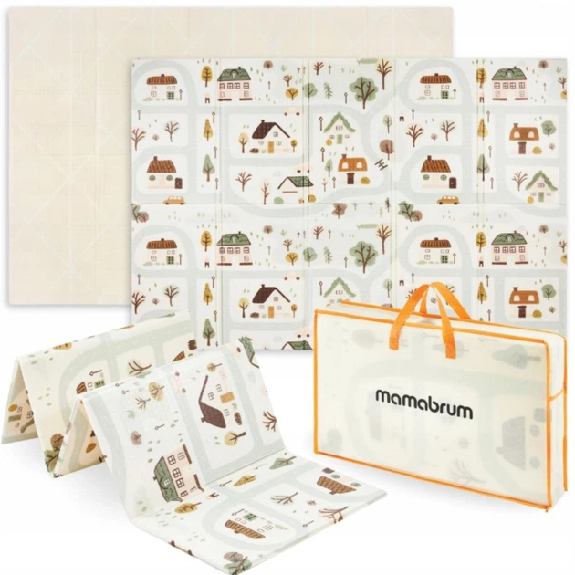 Двосторонній складний пінопластовий килимок R20 180x120 Чарівне містечко/Пісочний бежевий
