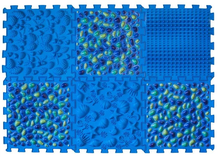 Килимок масажний Ортек Мікс для ніг. Пазли 6 штук Ortek ортопедичні тематичні в одному стилі блакитний + кольорова галька