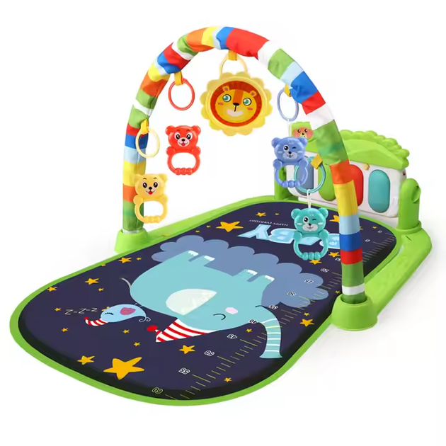 Ігровий дитячий килимок з музичним піаніно підвісними іграшками шкалою зросту принт зелений слон