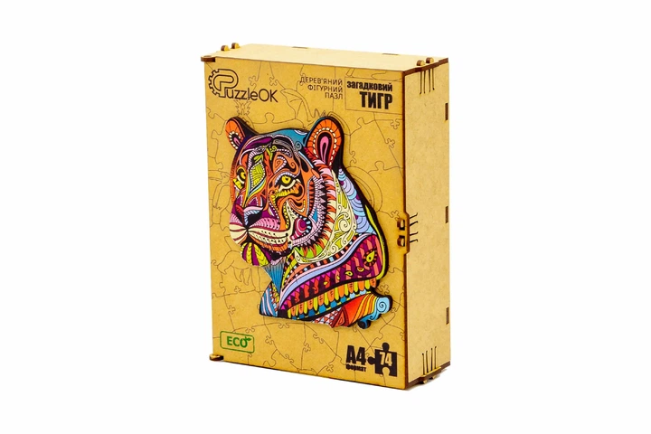 Фігурний деревяний пазл PuzzleOK "Загадковий Тигр" (PuzA4-04110)