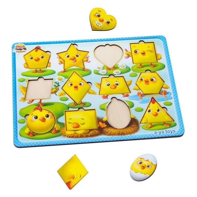 Дерев'яний пазл-вкладиш "Курчата" Ubumblebees (ПСД163) PSD163 геометричні фігури