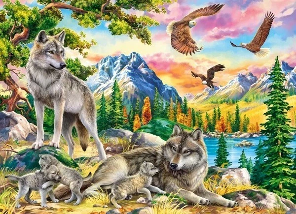 Пазли Castorland 300 елементів "Родина вовків і орли" (B-030514)