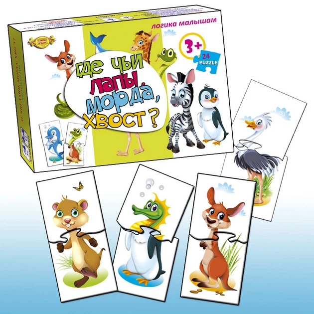 Дитяча гра-пазл "Де чиї лапи, морда, хвіст?" mkm0322, 24 деталі