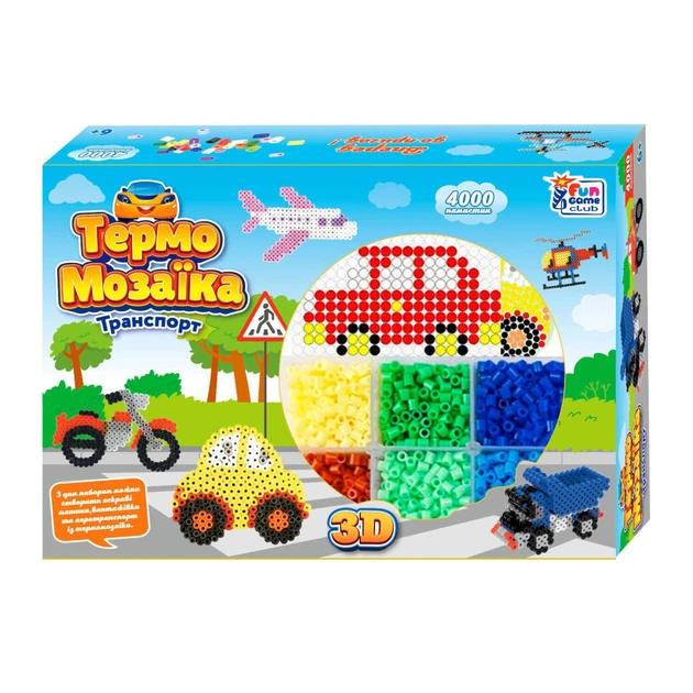 Дитяча термомозаїка "Транспорт" 4FUN Game Club 40057T 4000 намистин, 3 підставки